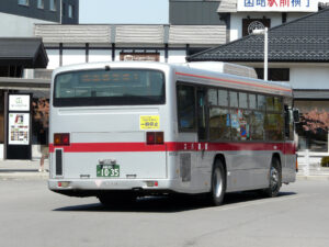 前中引戸・黒枠逆T字型窓のエルガノンステップバスで,