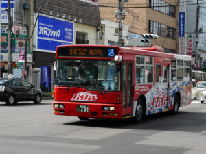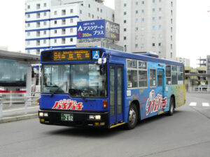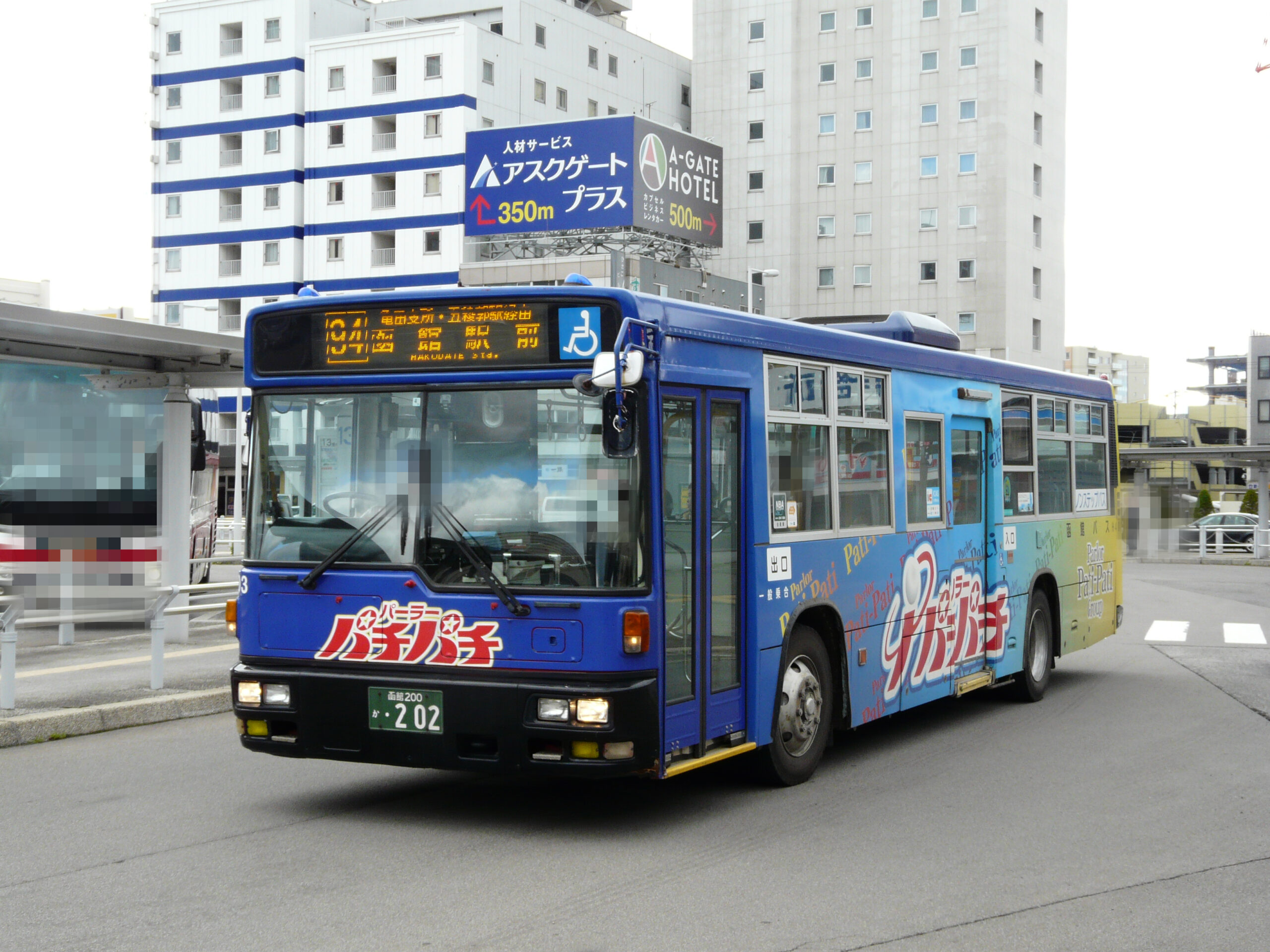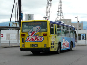 〈※以前は NCV,JOMO,JA共済,マルハンで後部は 函館バスラーメン花道 の広告バスであった〉