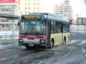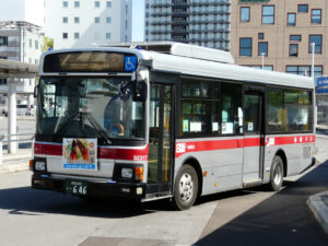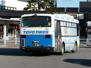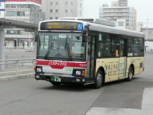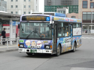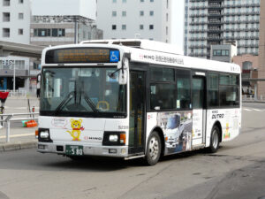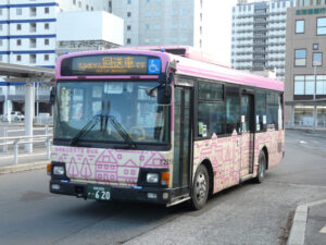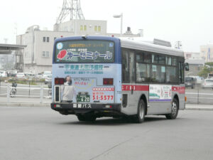 〈※以前は 3系統専用塗装 や,側面が 商工中金 で,後部が 第一ゼミナール の広告バスであった〉
