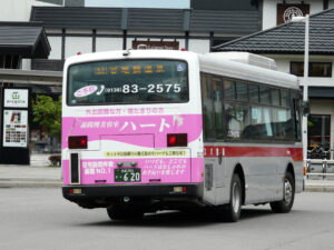 後部は 訪問理美容室ハート の広告バスとなっている。