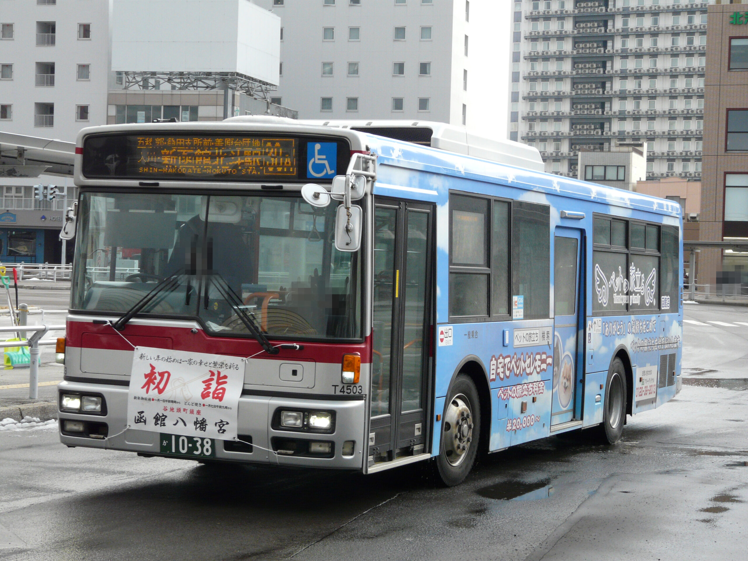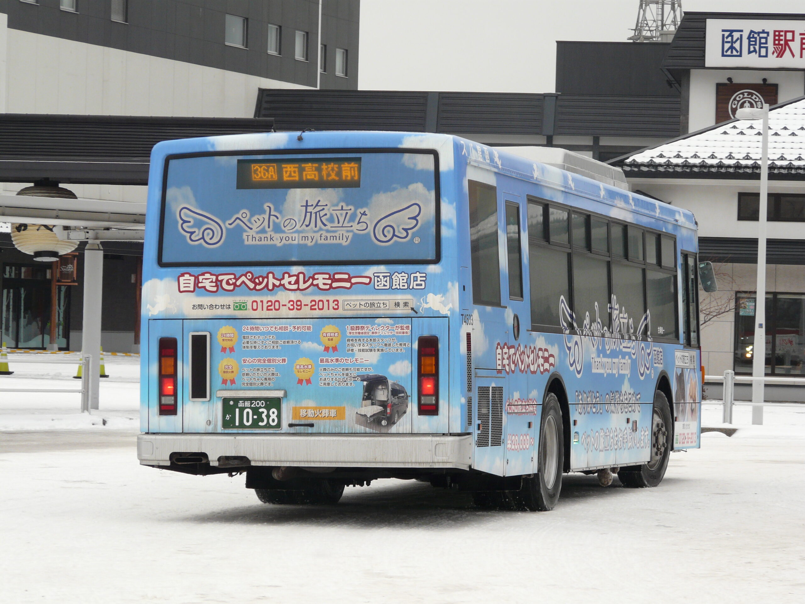 後部は はこだて自由市場 の広告バスで,他にも1台(T2329)存在している。