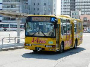 〈※以前は 3系統専用塗装 や,側面が 商工中金 で,後部が 第一ゼミナール の広告バスであった〉