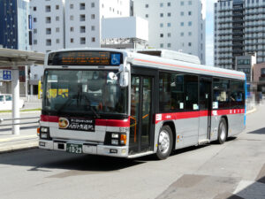 函館バス 三菱ふそう H3635 (PKG-AA274KAN) 6件の返信 2008年に東急バスが導入し,2024年に函館バスが導入した。 前中引戸・黒枠逆T字型窓のエアロスターSノンステップバスで, 軸距4.8メートルの短尺大型エアサス車である。 2024年10月に函館駅前にて撮影。 側面表示器は前扉の横に設置され,経由地が5カ所表示できるようになっている。 ※日吉営業所ではこれが初のエアロスターSの導入となった。 〈参考までに:東急バス時代の車番→ S878〉 〈おまけ:過去に撮影した写真〉 2024年9月に函館駅前にて撮影。