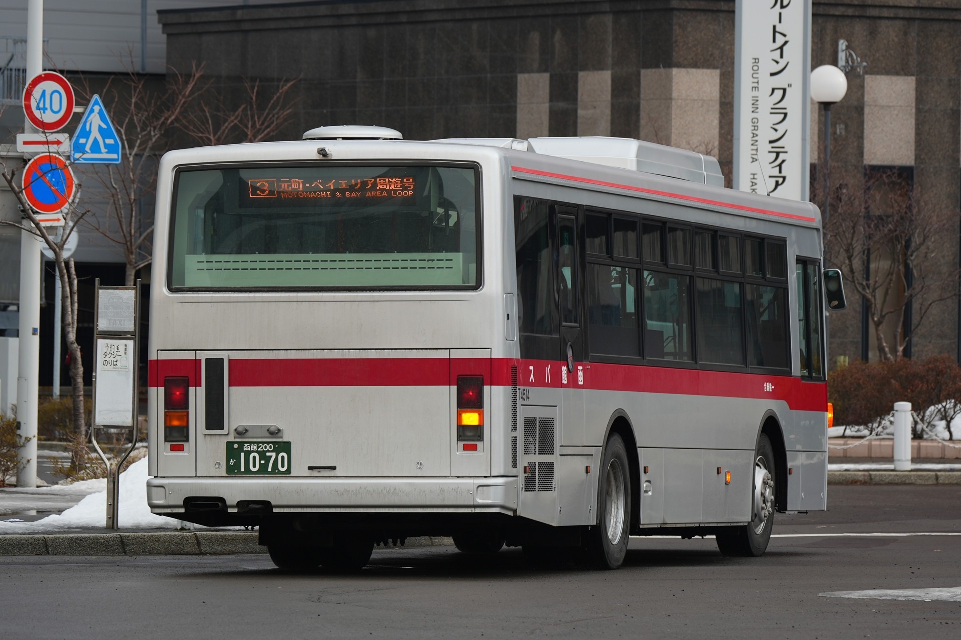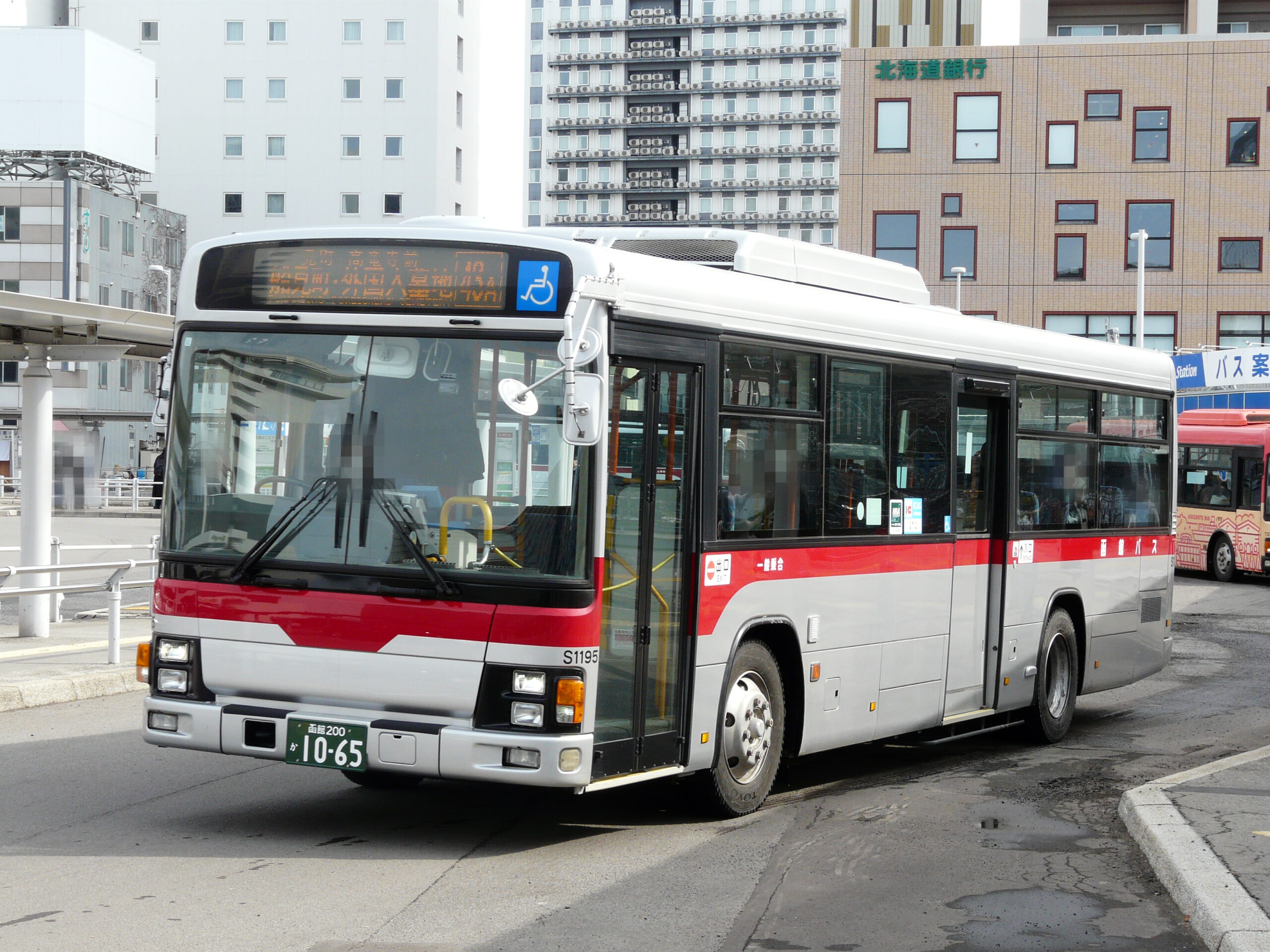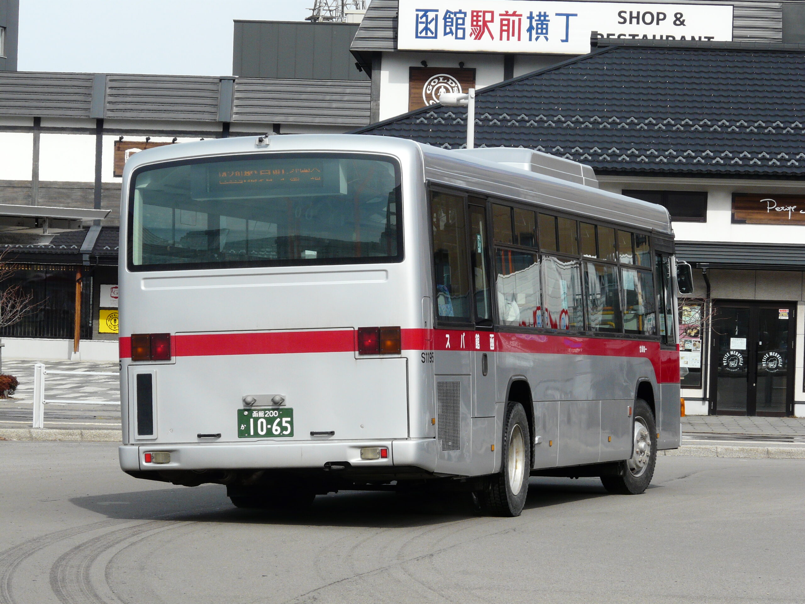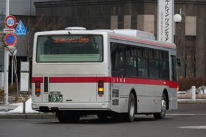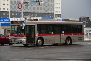 函館バス 日産ディーゼル S4511 (PKG-RA274KAN) コメントを残す (この写真は匿名様からの提供です。撮影日:2026年2月に函館駅前にて) 2009年に京浜急行バスが導入し,2025年に函館バスが導入した。 前中引戸・黒枠逆T字型窓のスペースランナーRAノンステップバスで, 軸距4.8メートルの短尺大型エアサス車である。 側面表示器は戸袋の前に設置され,経由地が5カ所表示できるようになっている。 最初は函館営業所の所属であったが,2026年より昭和営業所へと変わった。 〈参考までに:京急バス時代の車番→ N7968〉 〈おまけ:過去に撮影した写真〉 (この写真は匿名様からの提供です。撮影日:2026年1月に函館駅前にて)