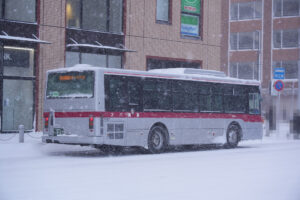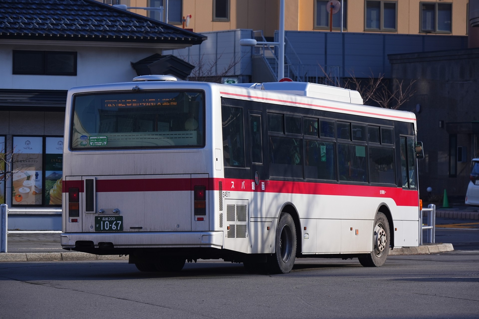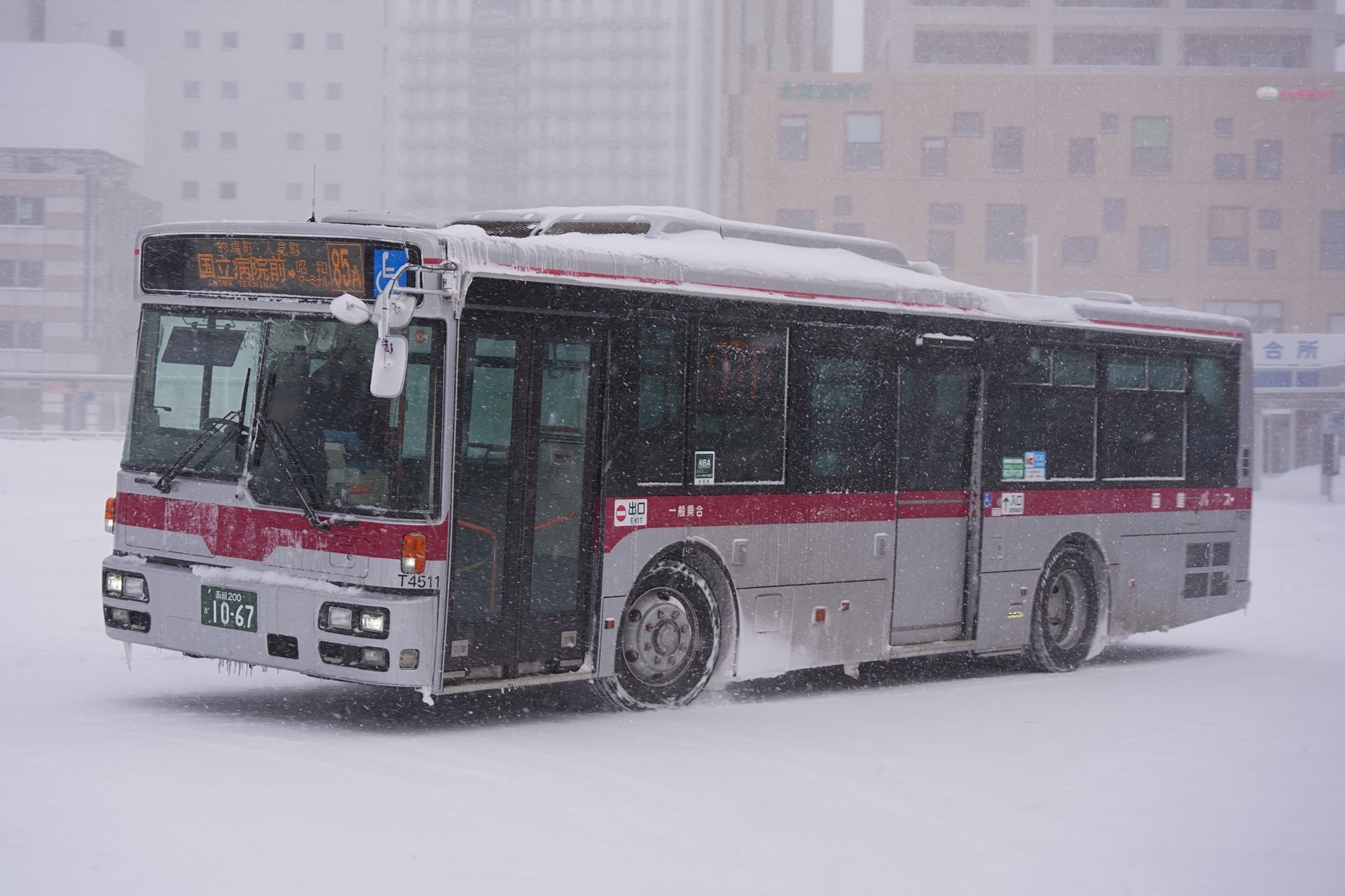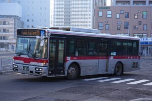 函館バス 日産ディーゼル S4511 (PKG-RA274KAN) コメントを残す (この写真は匿名様からの提供です。撮影日:2026年2月に函館駅前にて) 2009年に京浜急行バスが導入し,2025年に函館バスが導入した。 前中引戸・黒枠逆T字型窓のスペースランナーRAノンステップバスで, 軸距4.8メートルの短尺大型エアサス車である。 側面表示器は戸袋の前に設置され,経由地が5カ所表示できるようになっている。 最初は函館営業所の所属であったが,2026年より昭和営業所へと変わった。 〈参考までに:京急バス時代の車番→ N7968〉 〈おまけ:過去に撮影した写真〉 (この写真は匿名様からの提供です。撮影日:2026年1月に函館駅前にて)
